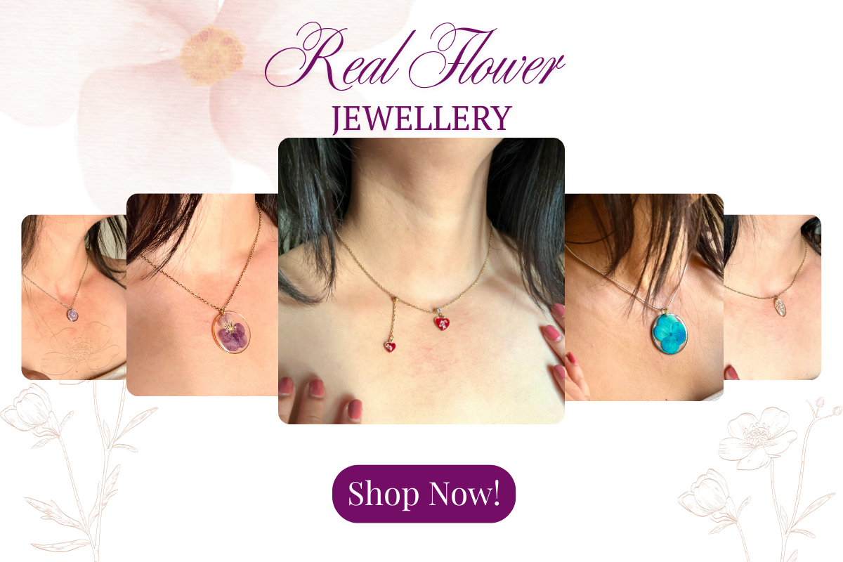 Totally in love with this real flower necklace, it is very unique and dainty. I would love to shop more. The travelling pouch is very convenient. Thanks!
