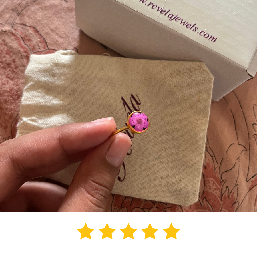 Such a cute ring, i was amazed to see a little real flower inside of it, Plum is my favourite flower. Thanks for the wonderful experience.