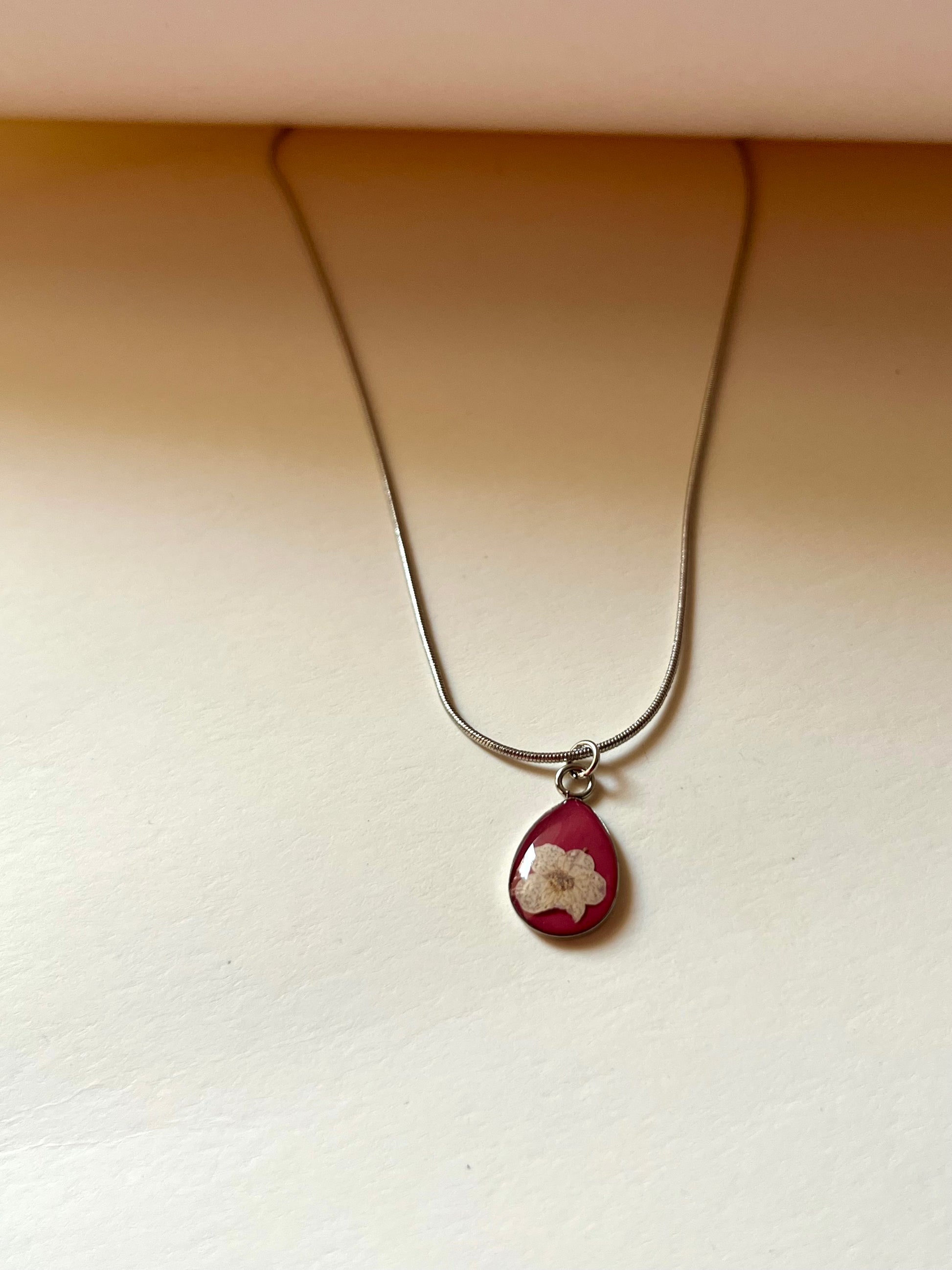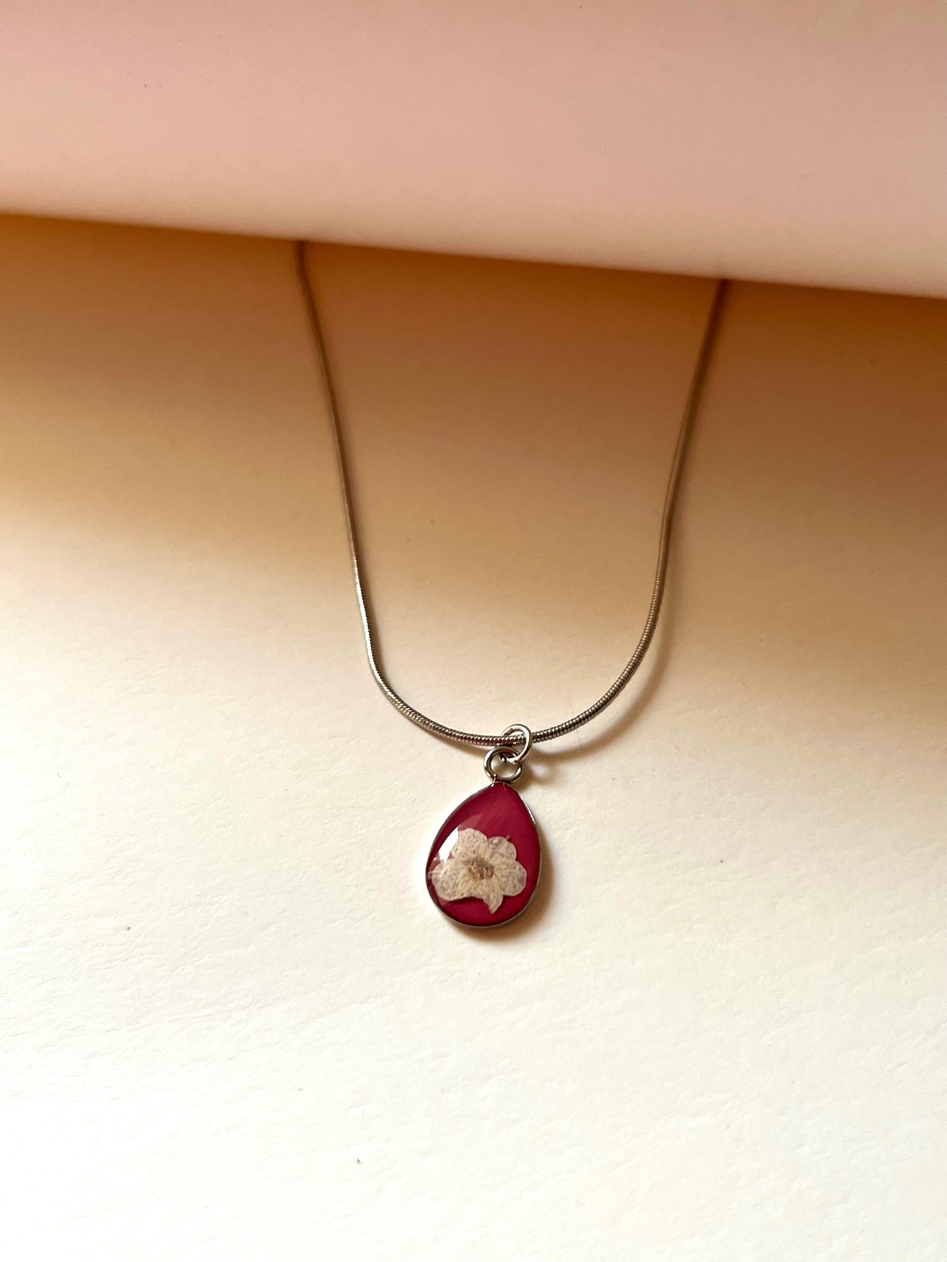Soft blush tones embrace a delicate real plum blossom, preserved in a heart that whispers romance and grace. The plum flower, known for symbolizing hope and new beginnings, makes this necklace a perfect gift of love and renewal. Wearing it feels dreamy and tender — like carrying a quiet promise close to your heart.